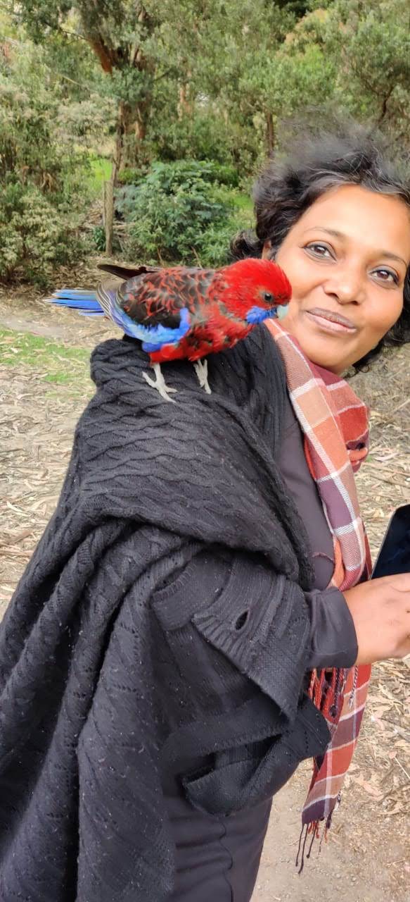 A lot of people bye birdseed from the cafe to feed the birds so most of the birds around here were used to having people around. Some even landed on our shoulders and heads!
