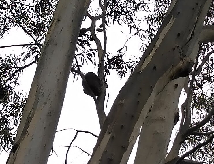 Can you see that lump high up on the tree? That’s the koala! A pair of binoculars would certainly have been handy. It was a wonder how it managed to stay up on the tree while staying fast asleep. Here’s a close-up of the koala.