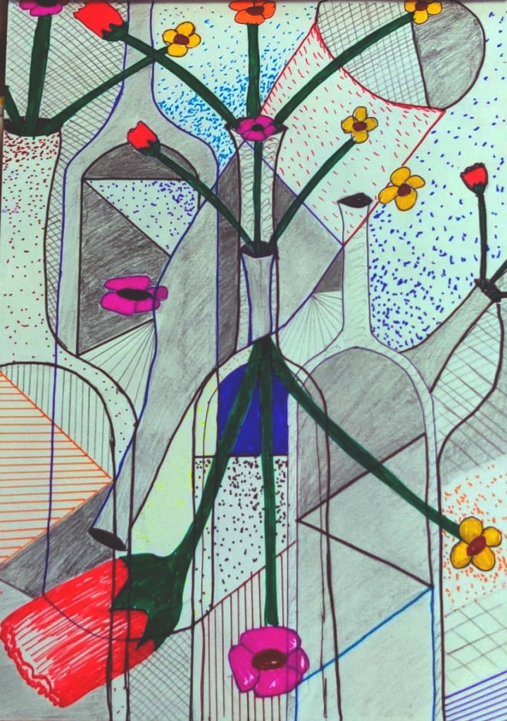 In any case, I chose a vase with flowers as my subject. Here’s one of Picasso’s paintings on the same subject:
